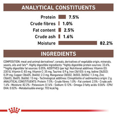 Enriched with highly-digestible ingredients and prebiotic fibers, it ensures optimal digestion and nutrient intake. The increased electrolyte content addresses nutrient deficiencies, while its appetizing formula, presented as tasty chunks in gravy, is well-accepted even by cats with decreased appetite due to illness.