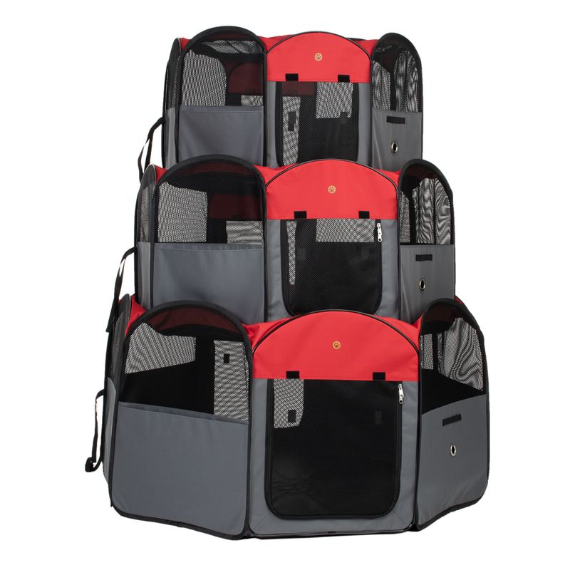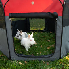 Crafted from robust nylon, the run is durable, water-resistant, and easy to care for. The unique 8-sided design ensures ample space, while the secure zip fastening guarantees peace of mind during playtime. With two convenient entrances and exits featuring a nylon net door, your pets can explore freely, and the run is quick to assemble and disassemble for added convenience.