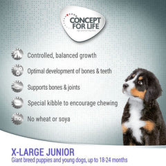 Concept for Life X-Large Junior is a premium, complete dry dog food meticulously crafted for the unique needs of junior giant breeds. Scientifically formulated, this nutrition supports the crucial 2nd growth phase, ensuring your giant puppy thrives.