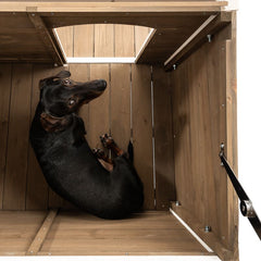 Important: Regularly treat the kennel with non-toxic wood care products, especially if kept outside, to prevent drying and maintain its aesthetic appeal.