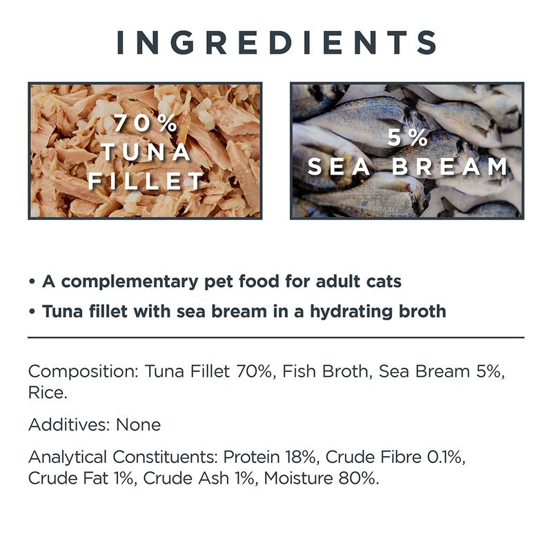 This high-quality supplementary wet food is tailored for adult cats, ensuring a well-balanced diet. Composed of just 3-4 natural ingredients, it contains no additives, animal derivatives, by-products, or fillers. Refined with rice, it provides easily digestible carbohydrates.