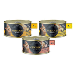 The Encore Cat Tin Saver Pack offers a variety of flavors to tantalize your cat's taste buds. The Fish Selection Multipack includes Tuna Fillet, Tuna Fillet with Salmon, and Ocean Fish. The Chicken Selection Multipack features Chicken Breast, Chicken Breast with Cheese, and Chicken Breast with Ham & Vegetables.