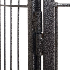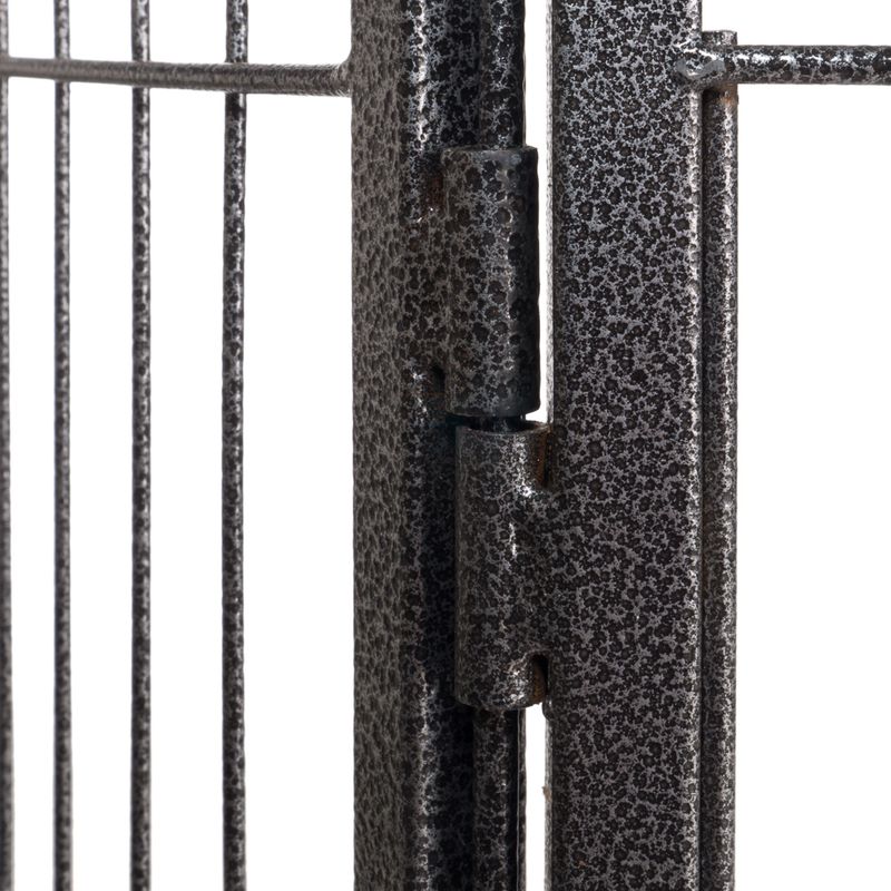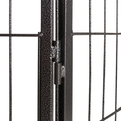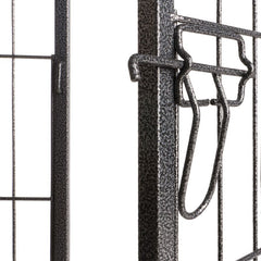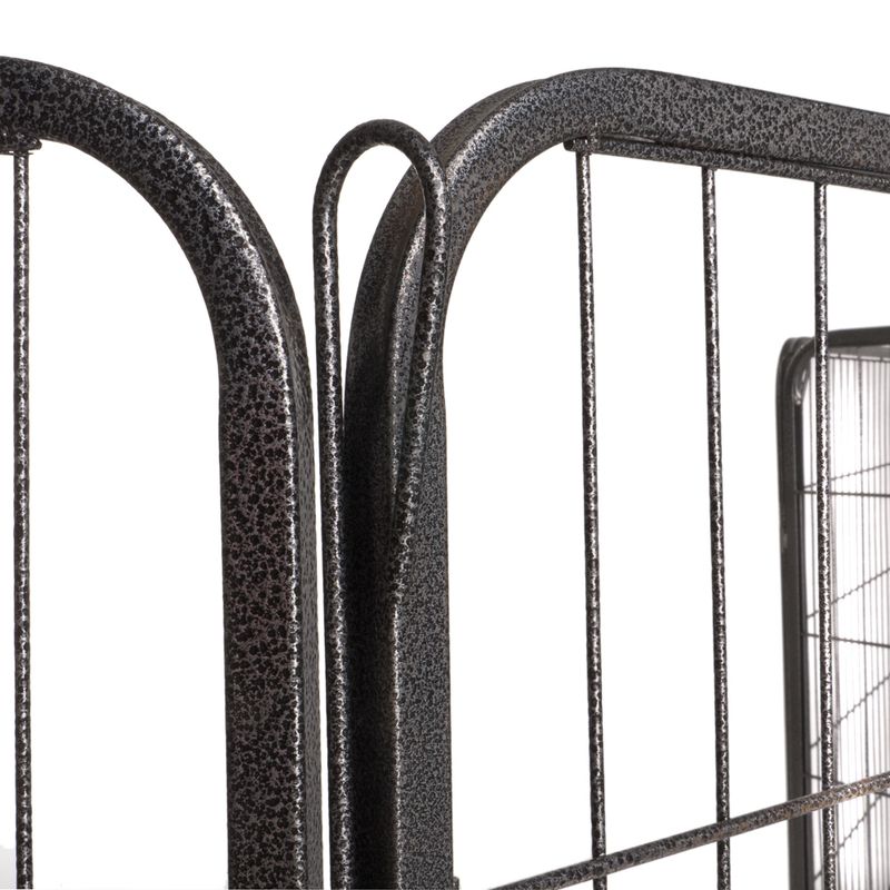 The pen offers indispensable protection, allowing the mother to leave easily while keeping the puppies secure. It's a must-have for breeders and puppy owners, suitable for both indoor and outdoor use. With multiple ways to assemble, the setup is simple and customizable to your space and needs. The hammered paint finish in black/silver adds a stylish touch.