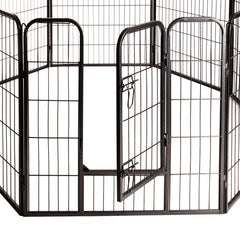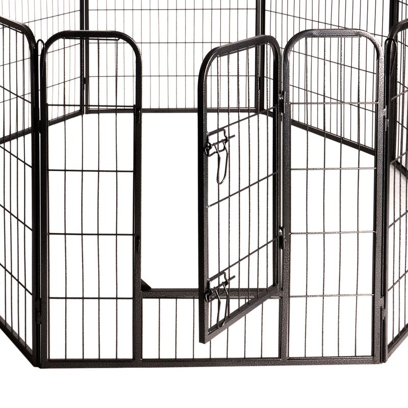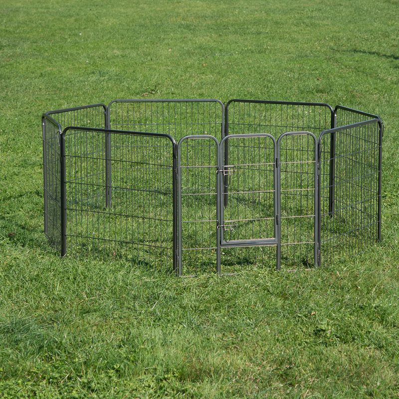 The Metal Run for Small Pet & Puppies is a versatile solution tailored for the needs of both puppies and their mothers. With its gate on a raised threshold, it ensures safety indoors and outdoors. This sturdy pen, constructed with 8 painted metal elements, is ideal for the first weeks and months after birth.