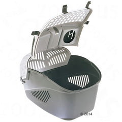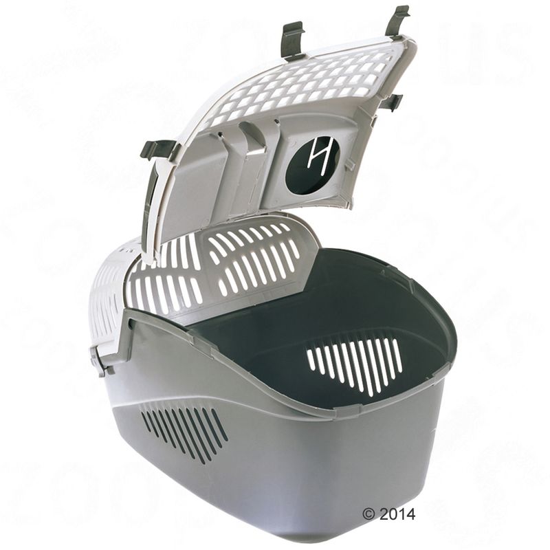 The standout feature is the removable top, providing stress-free entry and exit through two large fold-up doors. Secure your pet during car journeys with practical anchor mechanisms compatible with standard three-point seatbelts. Optimal air circulation is ensured by ventilation grilles in both top and bottom sections, preventing overheating.