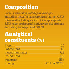 Additives per kg: Vitamin E (1365mg), zinc [as zinc sulphate heptahydrate] (198mg), chicken flavour (19.4mg).