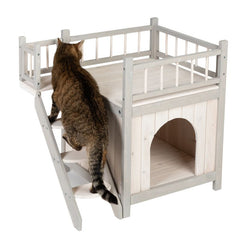 The Prince Cat Playhouse offers your feline friend a majestic retreat with a covered den on the ground floor and a splendid rooftop lounge. After a tiring day, your kitty can relax in the den or climb the steps to the lookout post, providing a commanding view. This charming hideaway seamlessly fits into any room's decor, not just the playroom.