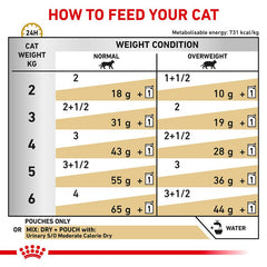 Further information:During illness, exclusively feed Royal Canin Veterinary - Urinary S/O Moderate Calorie for optimal effectiveness. Urinary S/O wet cat food is advised for recurring idiopathic cystitis.