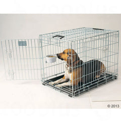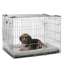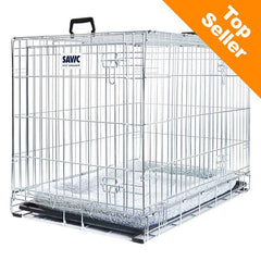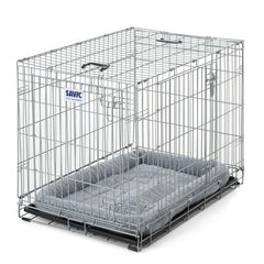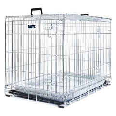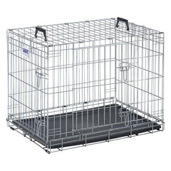 The two doors on the front, along with side and top openings, provide convenient access for your dog. Transporting is a breeze with two removable handles, and the stable plastic tray at the base ensures easy cleaning. The included machine-washable cushion adds an extra layer of comfort for your pet.